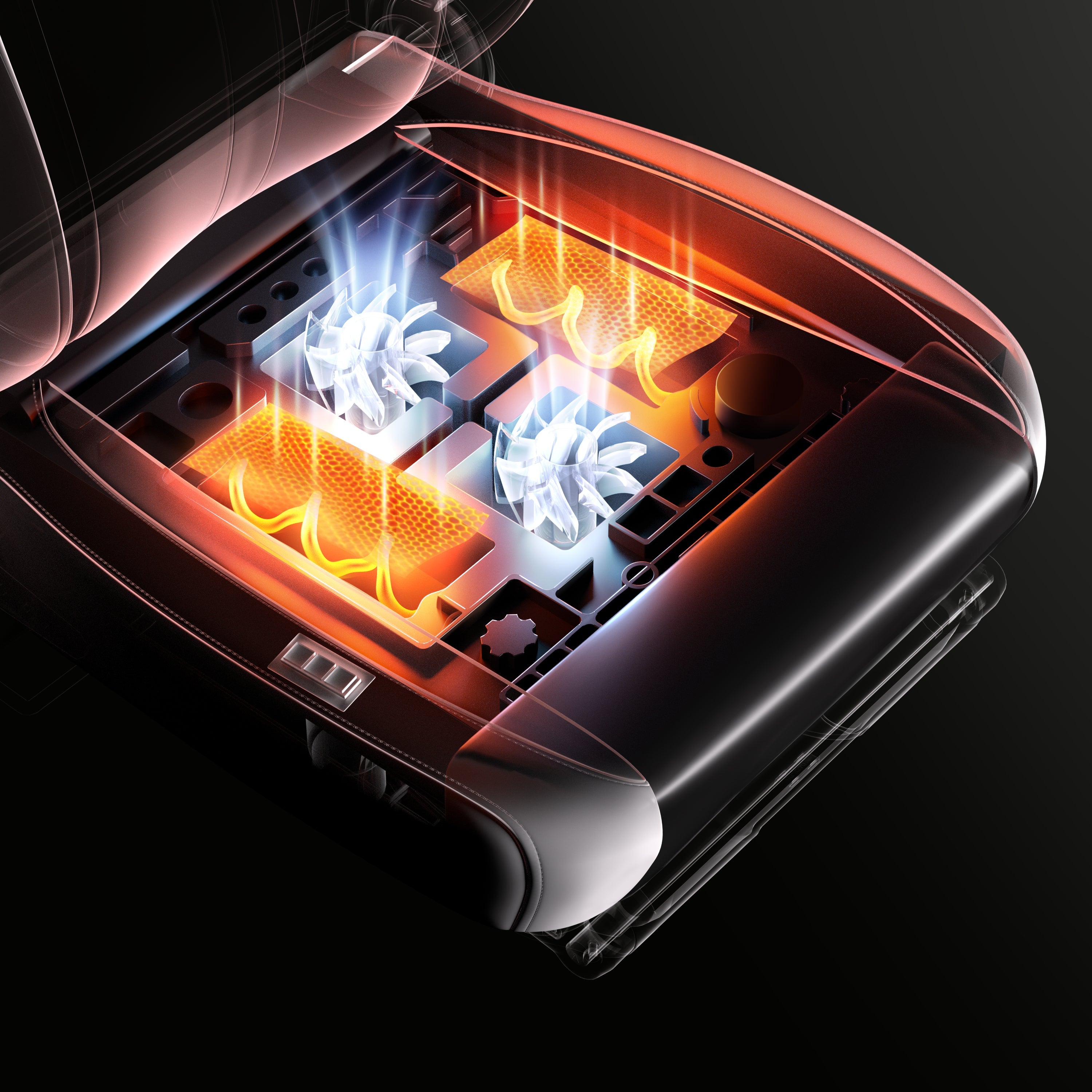 Master every season with smart climate control: Dual turbo fans blast 66°F cooling air to prevent swamp-ass during ranked grind, while carbon-fiber heating (up to 122°F) tackles winter chill.